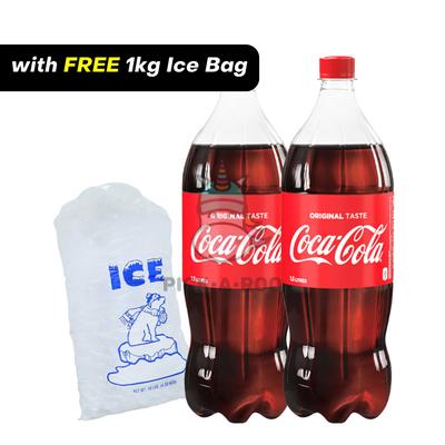 2 Bottles Coca-cola Regular 1.5 liters + FREE 1kg Distilled Tube Ice