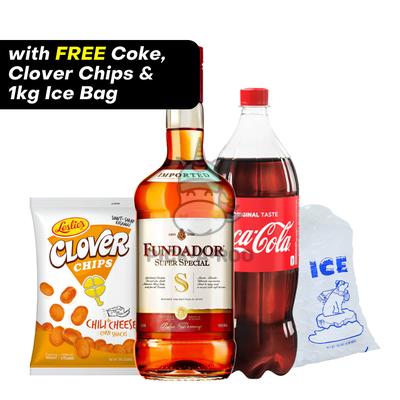 1L Fundador Super Special + 1kg Ice + 1.5 Coke + Clover Chips Bundle