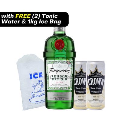1L Tanqueray Premium Dry Gin + FREE 1kg Ice & 2 Cans Tonic Water